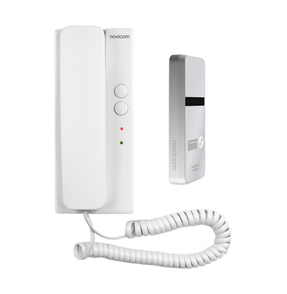 В комплект входит аудиотрубка и вызывная панель, которые обеспечивают качественную передачу звука в обе стороны на расстоянии до 100 м по 2-х проводному кабелю. Опционально к комплекту можно подключить до 3-х дополнительных аудиотрубок Novicam VOICE EXTRA.