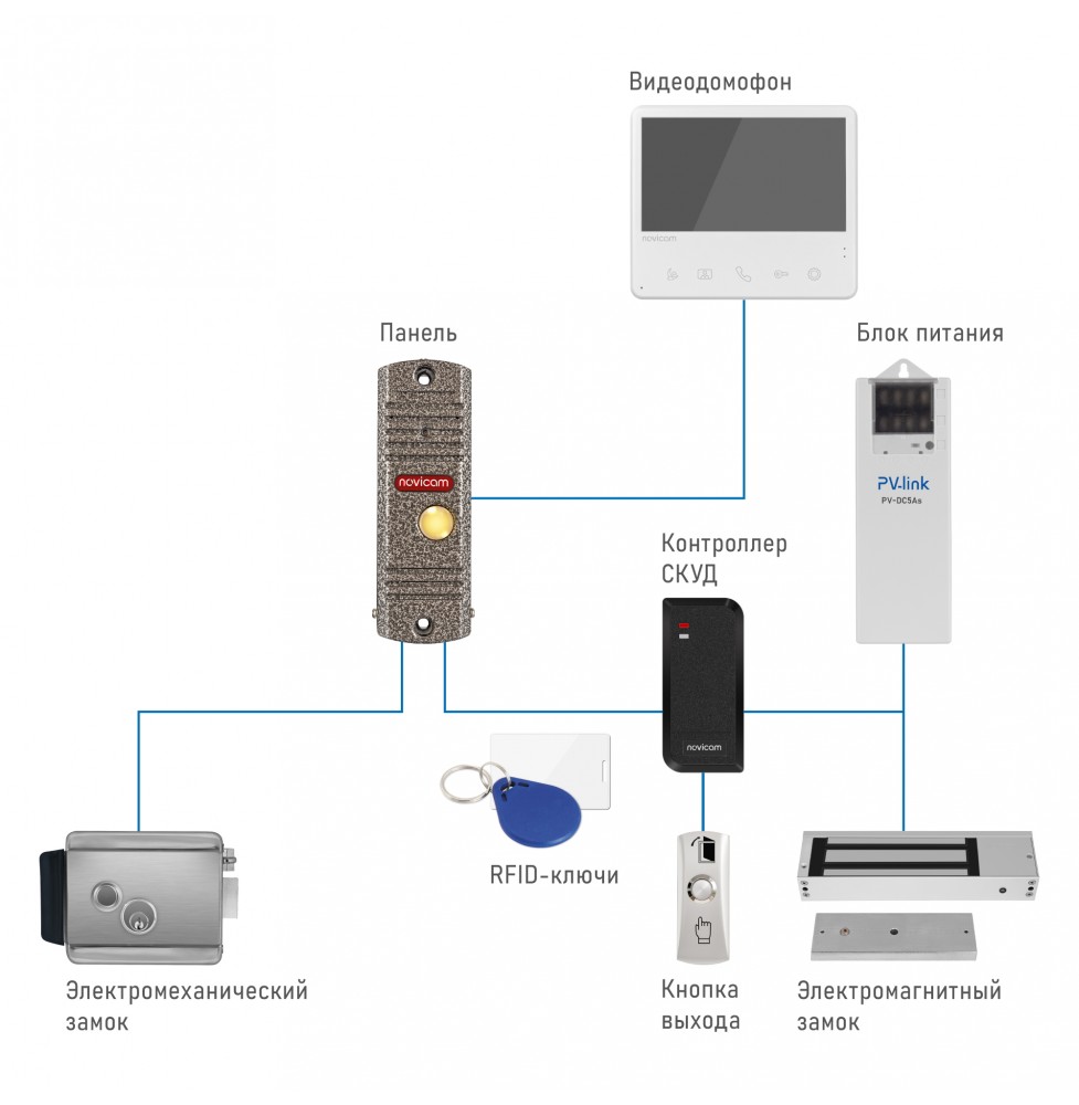 Благодаря классическому дизайну, вызывная панель Novicam прекрасно подойдет для организации безопасного доступа как снаружи, так и внутри любого помещения, например подъезда, загородного дома, квартиры, офиса и склада.